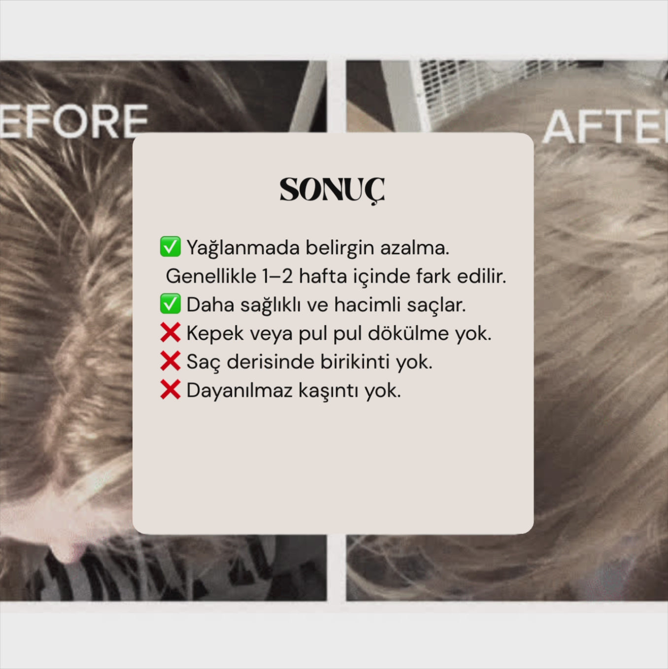 Ayrıca, saç dökülmesini azalttığı, bebek saçlarının çıkışını hızlandırdığı ve yeni tellerin çıkmasını engelleyebilen saç derisi birikintilerini temizlediği görülmüştür. ✨